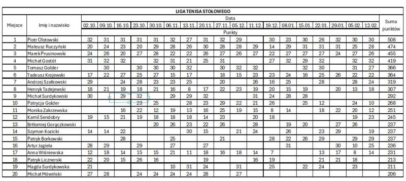 W czwartek 12 lutego rozegrana została 18 kolejka naszej ligi. Na turnieju w tłusty czwartek pojawiło się 23 zawodników. Uczestnicy tego dnia nie dość, że spędzili przy stołach miło czas, to przy okazji spalili kilka dodatkowych kalorii, które złapali jedząc tego dnia różne słodkości.